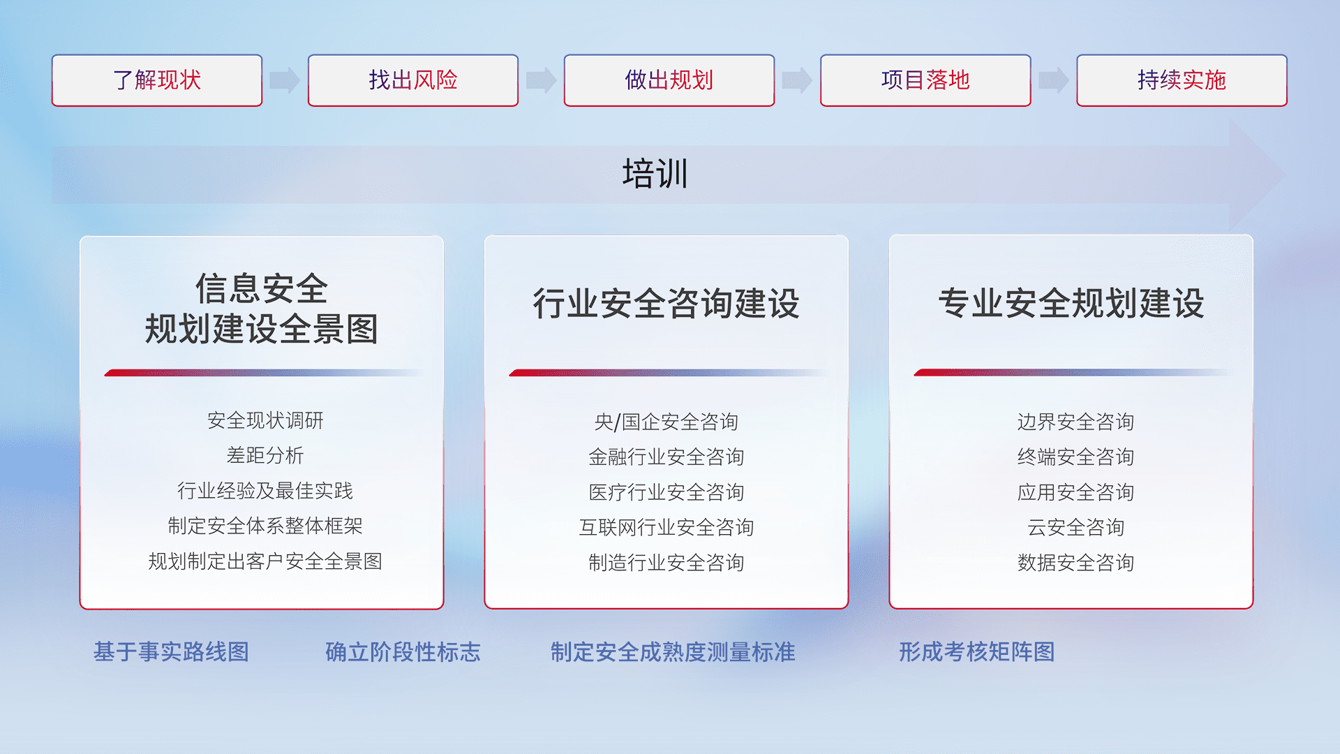 针对客户行业特性,,将宏观的安全战略和需求,,通过专业的交付服务,,实现项目落地,,为客户提供标准规范的集成交付服务。。。